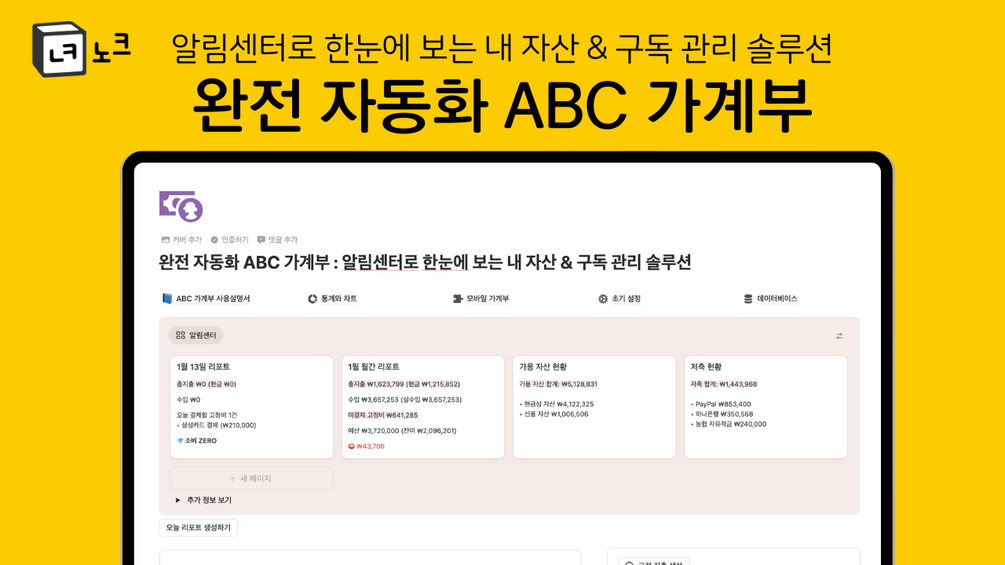 완전 자동화 ABC 가계부 – 알림센터로 한눈에 보는 내 자산 & 구독 관리 솔루션