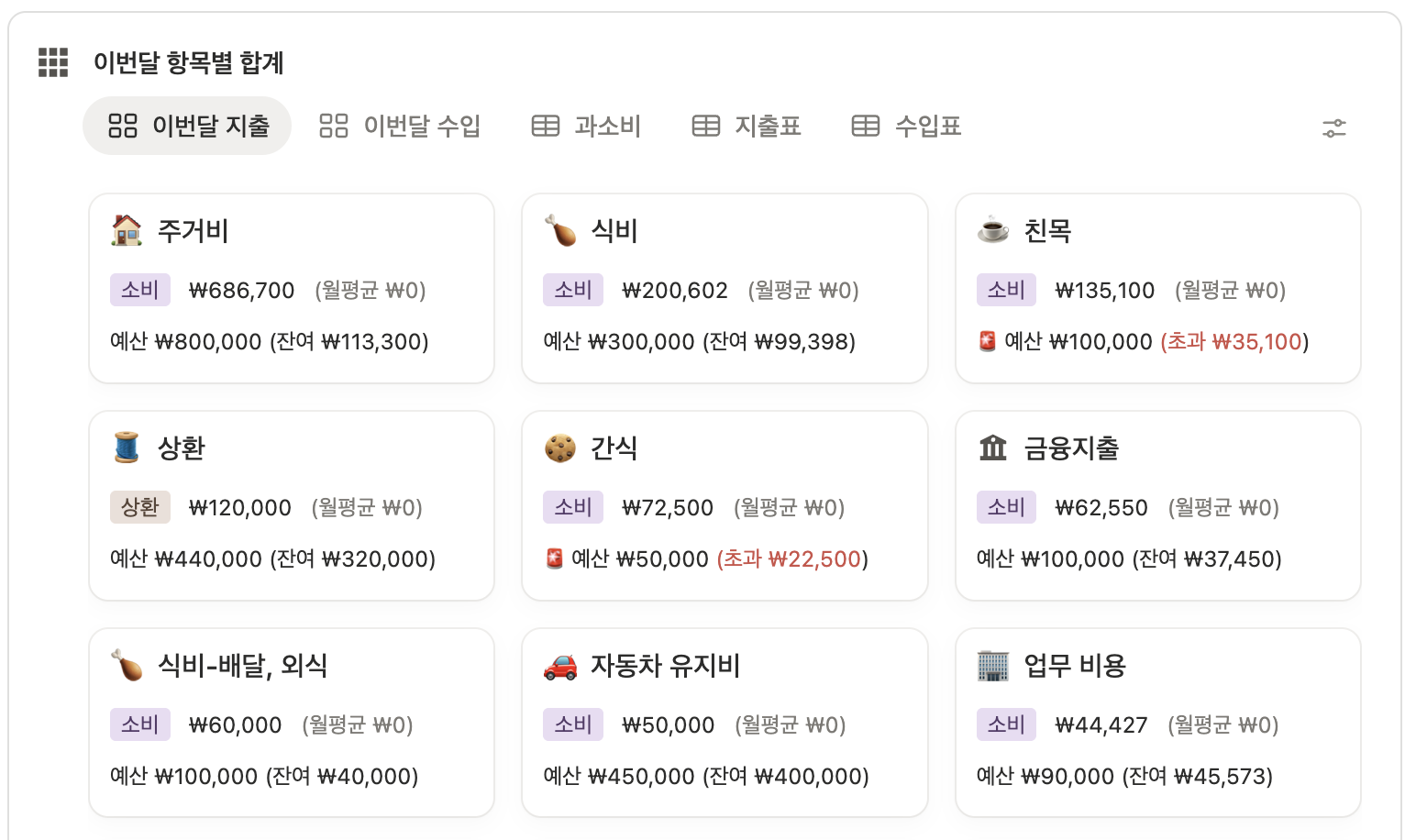 한 달 결산할 때 돈이 많이 새는 항목이 바로 드러납니다.
